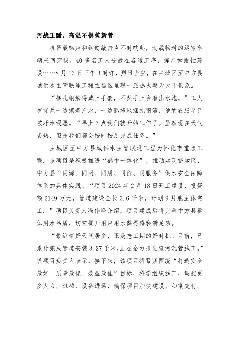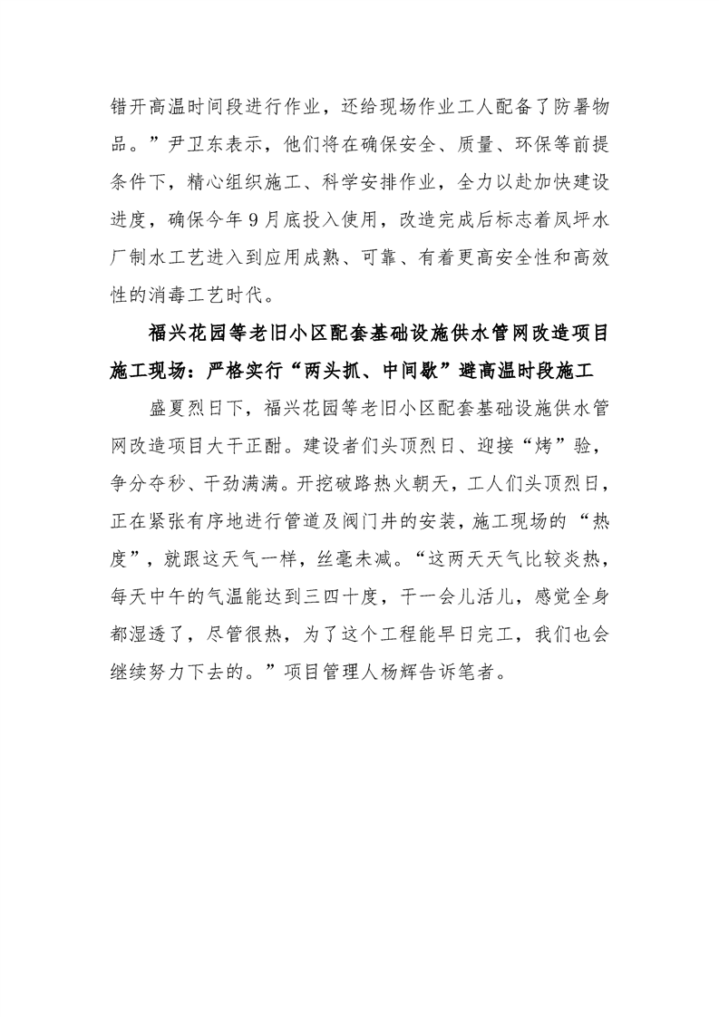 迎战酷暑 “水力”全开 怀化产投自来水公司重点项目建设不松劲
